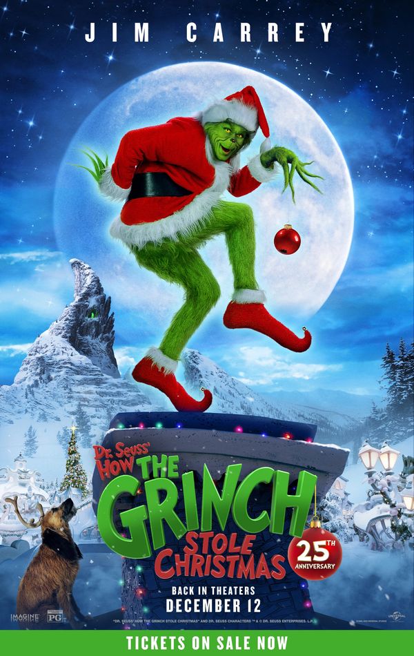 In this live-action adaptation of the beloved children's tale by Dr. Seuss, the reclusive green Grinch (Jim Carrey) decides to ruin Christmas for the cheery citizens of Whoville. Reluctantly joined by his hapless dog, Max, the Grinch comes down from his mountaintop home and sneaks into town to swipe everything holiday-related from the Whos. However, the bitter grump finds a hitch in his plans when he encounters the endearing Cindy Lou Who (Taylor Momsen).